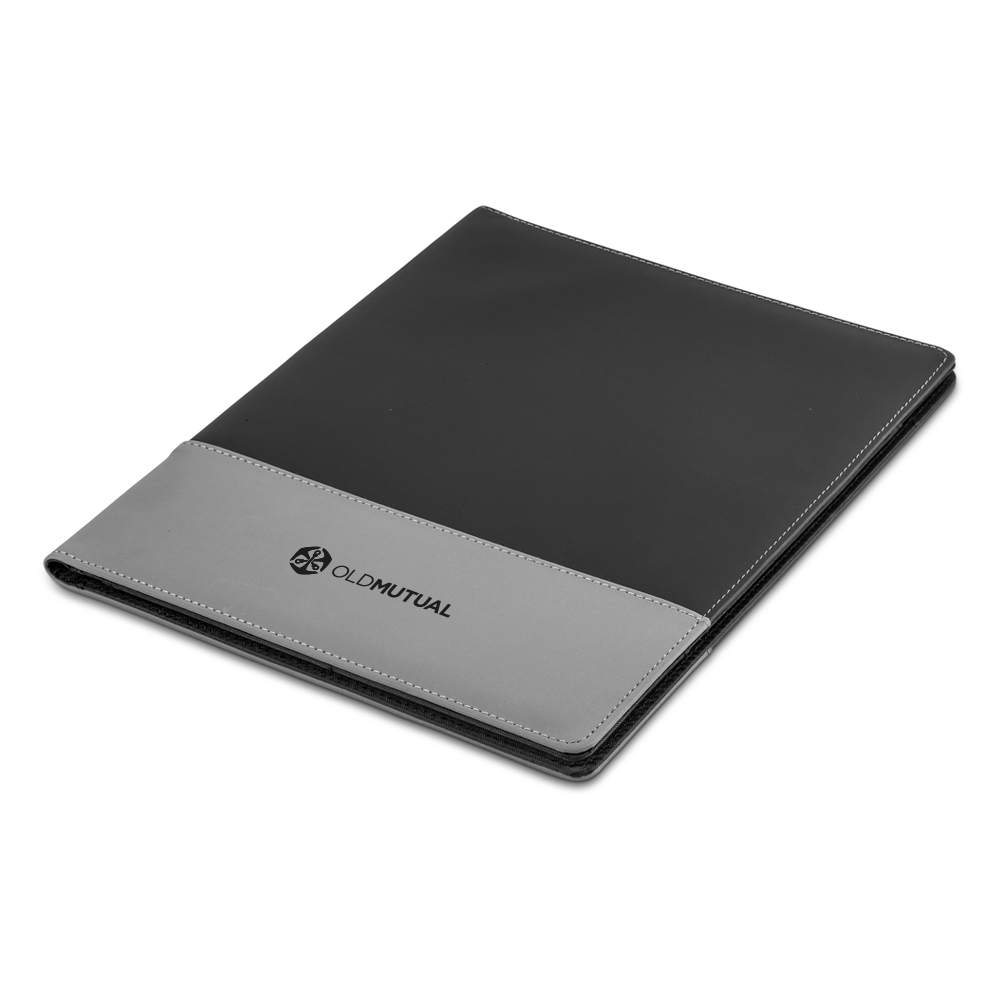 This two-tone folder has a slim design and plenty of space to brand your logo or message.